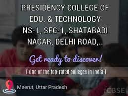 Presidency College of Education and Technology, Meerut is a premier institution established in 2005. Affiliated with Chaudhary Charan Singh University, Meerut, it offers specialized B.Ed and D.El.Ed programs. The college is dedicated to fostering skilled educators and promoting academic excellence in teacher training.