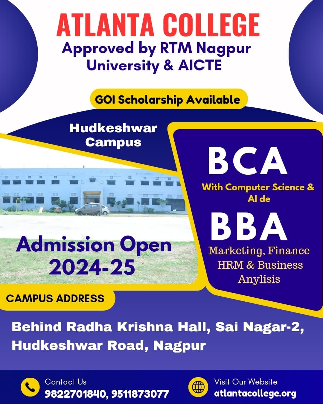 Atlanta College, situated on Kamptee Road in Nagpur, stands as an educational entity. Specific verifiable details regarding its establishment, university affiliation, academic offerings, and campus facilities are not readily available through official or established public information channels.