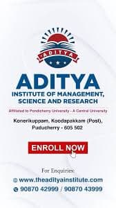 Aditya Institute of Management, Science and Research is an institution located in Puducherry.
