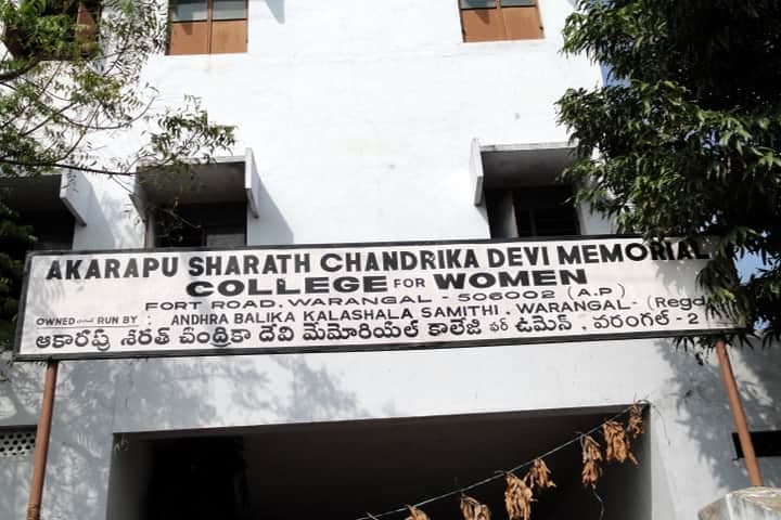 Akarapu Sharath Chandrika Devi Memorial College for Women, established in 1975 and affiliated with Kakatiya University, is a premier women''s institution in Warangal, Telangana. Offering over 30 UG and PG programs across 17 departments, it nurtures academic excellence on its 10-acre campus for approximately 1650 students.