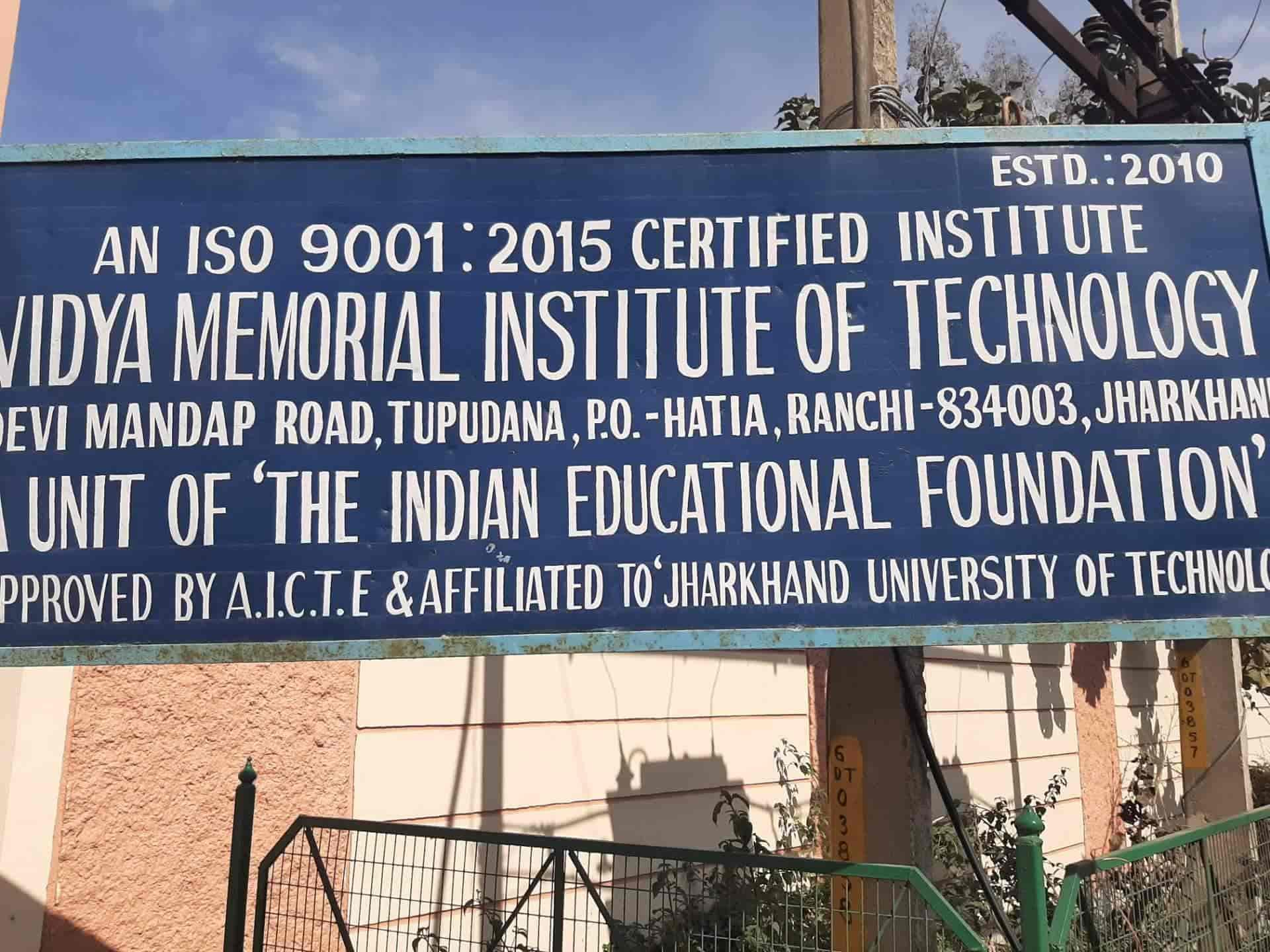 Vidya Memorial Institute of Technology (VMIT), Ranchi, established in 2009 and affiliated with Jharkhand University of Technology, is a prominent engineering college. It offers popular B.Tech programs including Computer Science and Civil Engineering, focusing on academic rigor and preparing students for promising career outcomes.