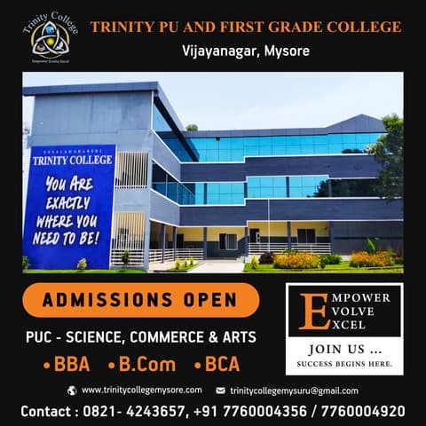 Devalamaharshi Trinity First Grade College, Mysuru, established in 2007 and affiliated with the University of Mysore, is a premier institution. It offers diverse undergraduate programs in Arts, Science, Commerce, Management, and Computer Applications, focusing on holistic student development.
