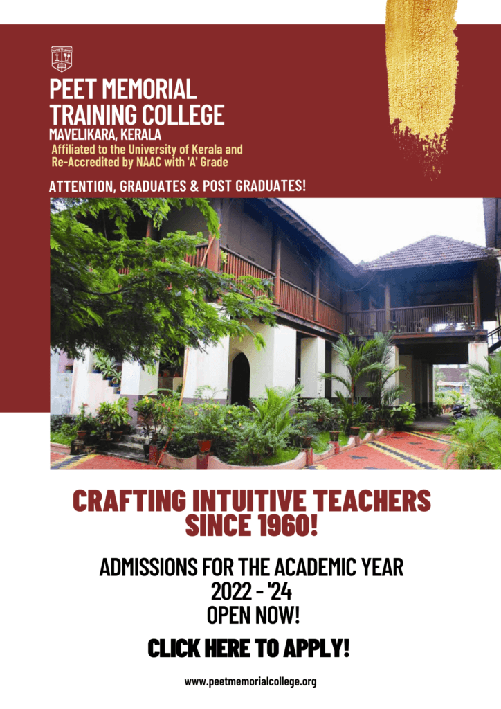 Peet Memorial Training College, located in Mavelikara, Alappuzha, Kerala, is a premier institution established in 1960. Affiliated with the University of Kerala, it is well-regarded for its Bachelor of Education (B.Ed) and Master of Education (M.Ed) programs, contributing significantly to teacher training. The college holds a NAAC ''B'' grade.