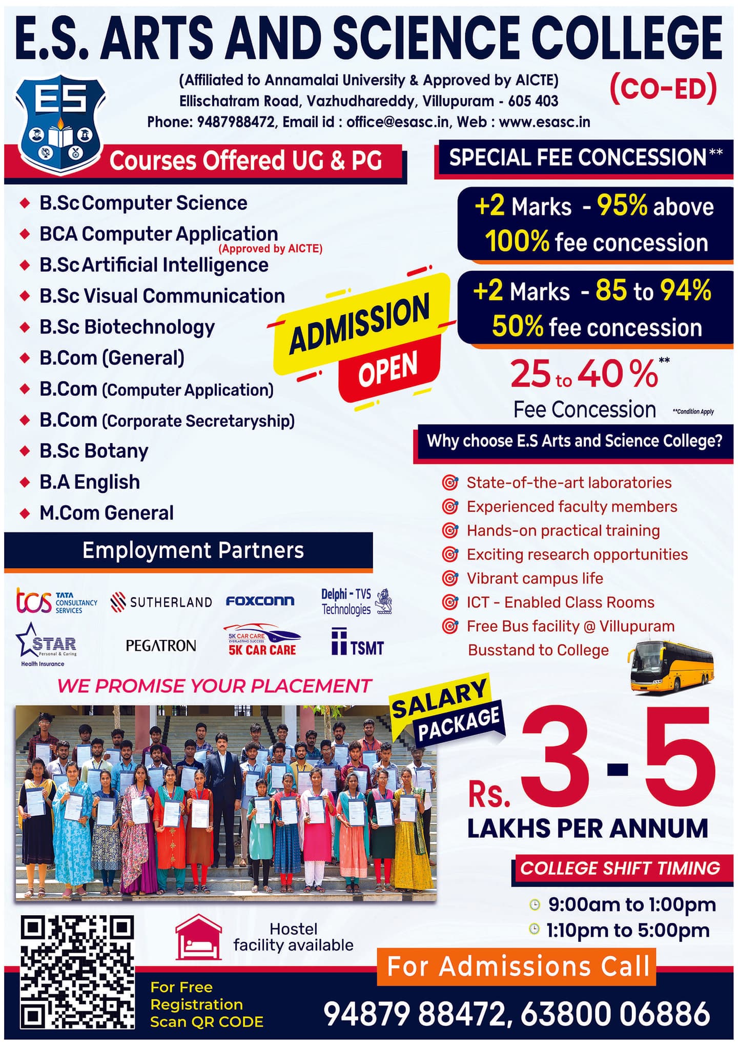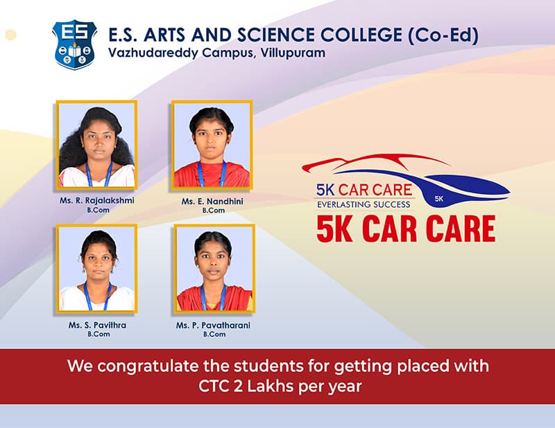 E.S. Arts and Science College, a premier institution in Villupuram, Tamil Nadu, was established in 1995. Affiliated with Annamalai University, it offers diverse UG and PG programs across 12 departments. With a vibrant 15.11-acre campus and NAAC B++ Grade accreditation, it champions academic excellence and holistic student development.