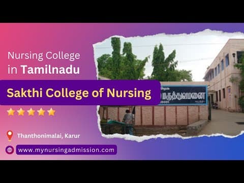 Sakthi College of Nursing, located in Karur, Tamil Nadu, is a premier co-educational institution established in 2008. Affiliated with The Tamil Nadu Dr. M.G.R. Medical University, Chennai, it is renowned for its comprehensive B.Sc., Post Basic B.Sc., and M.Sc. Nursing programs, fostering skilled healthcare professionals.