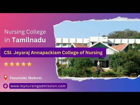 C.S.I. Jeyaraj Annapackiam College of Nursing & Allied Sciences, established in 2007 in Madurai, is a premier women''s institution affiliated with The Tamil Nadu Dr. M.G.R. Medical University. Renowned for its B.Sc, Post Basic B.Sc, and M.Sc Nursing programs, it focuses on empowering future healthcare professionals with a dedicated faculty of 20 and a total seat capacity of 175.