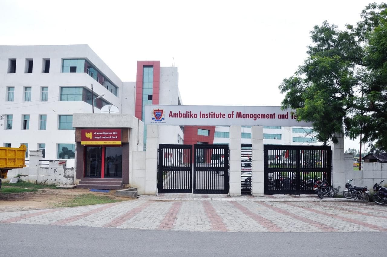 Ambalika Institute of Management and Technology (AIMT) is a distinguished institute, established in 2008 in Lucknow, Uttar Pradesh. The Ambalika Institute of Management and Technology offers a total of 8 courses across various disciplines, a non-private college member. AIMT is renowned; the institute provides programs including Engineering, Management, Pharmacy, and Computer Applications across its departments. This top-ranked premium institute (Ambalika Institute of Management and Technology) operates through more than 9 specialized departments, with its campus spread over 20 acres in Mohanlalganj. Ambalika Institute of Management and Technology is committed to academic excellence and is recognized by appropriate regulatory bodies, being affiliated with Dr. A.P.J. Abdul Kalam Technical University (AKTU), Lucknow (often referred to as a premier college).