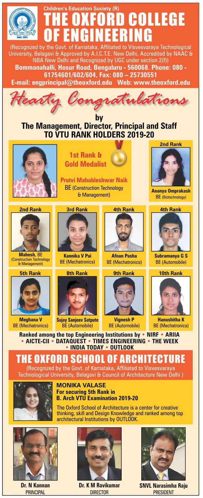 M. S. Ramaiah Institute of Technology, a distinguished engineering institute, was established in 1962 in Bengaluru, Karnataka. The M. S. Ramaiah Institute of Technology offers Over 67 courses across various disciplines, including Bachelor of Engineering, Master of Technology, and Doctor of Philosophy, a non-private college member. MSRIT is renowned; this institute operates through 21 specialized departments. This top-ranked premium institute (M. S. Ramaiah Institute of Technology) has secured significant recognition, ranked 75th by NIRF 2024 for Engineering, and 21st for Architecture by NIRF 2024. Additionally, Ramaiah Institute of Technology was 6th by Outlook 2024 and 5th by India Today 2024 among private engineering colleges. The M. S. Ramaiah Institute of Technology is committed to academic excellence and is recognized by appropriate regulatory bodies (often referred to as a premier college).
