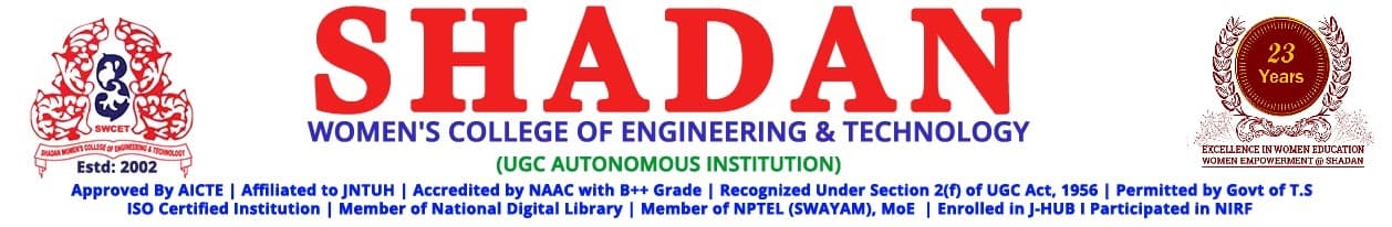 Shadan Women's College of Engineering and Technology (SWCET), Hyderabad, stands as a premier institution for women, established in 2002. Affiliated with JNTUH and approved by AICTE, it offers B.Tech and MBA programs across 6 departments, fostering academic excellence and empowering female engineers in Telangana.