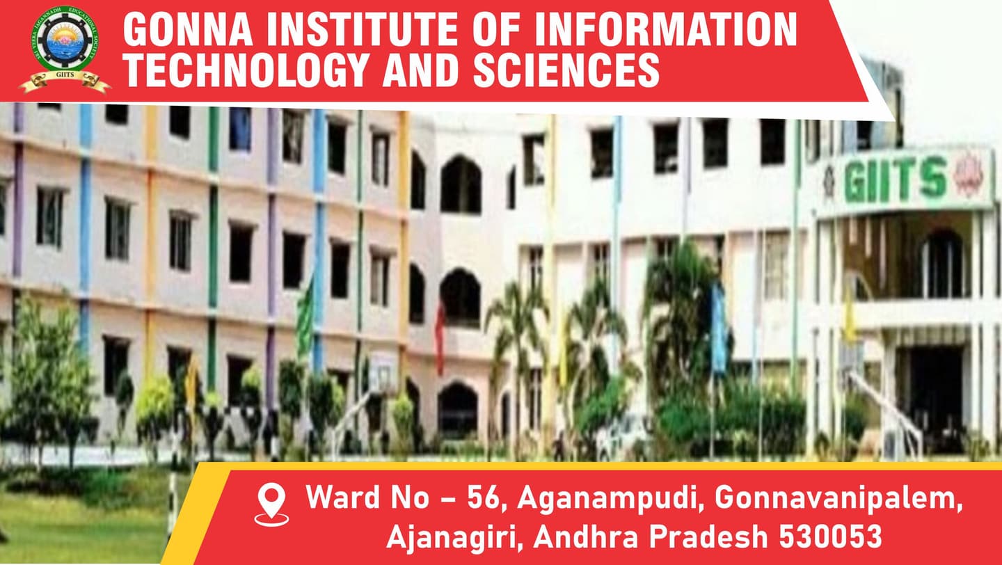 Gonna Institute of Information Technology and Sciences (GIITS), Visakhapatnam, established in 2008, is a premier college affiliated with JNTUK. Offering diverse B.Tech, M.Tech, and MBA programs on its 16-acre campus, GIITS focuses on academic strength with over 150 dedicated faculty members.