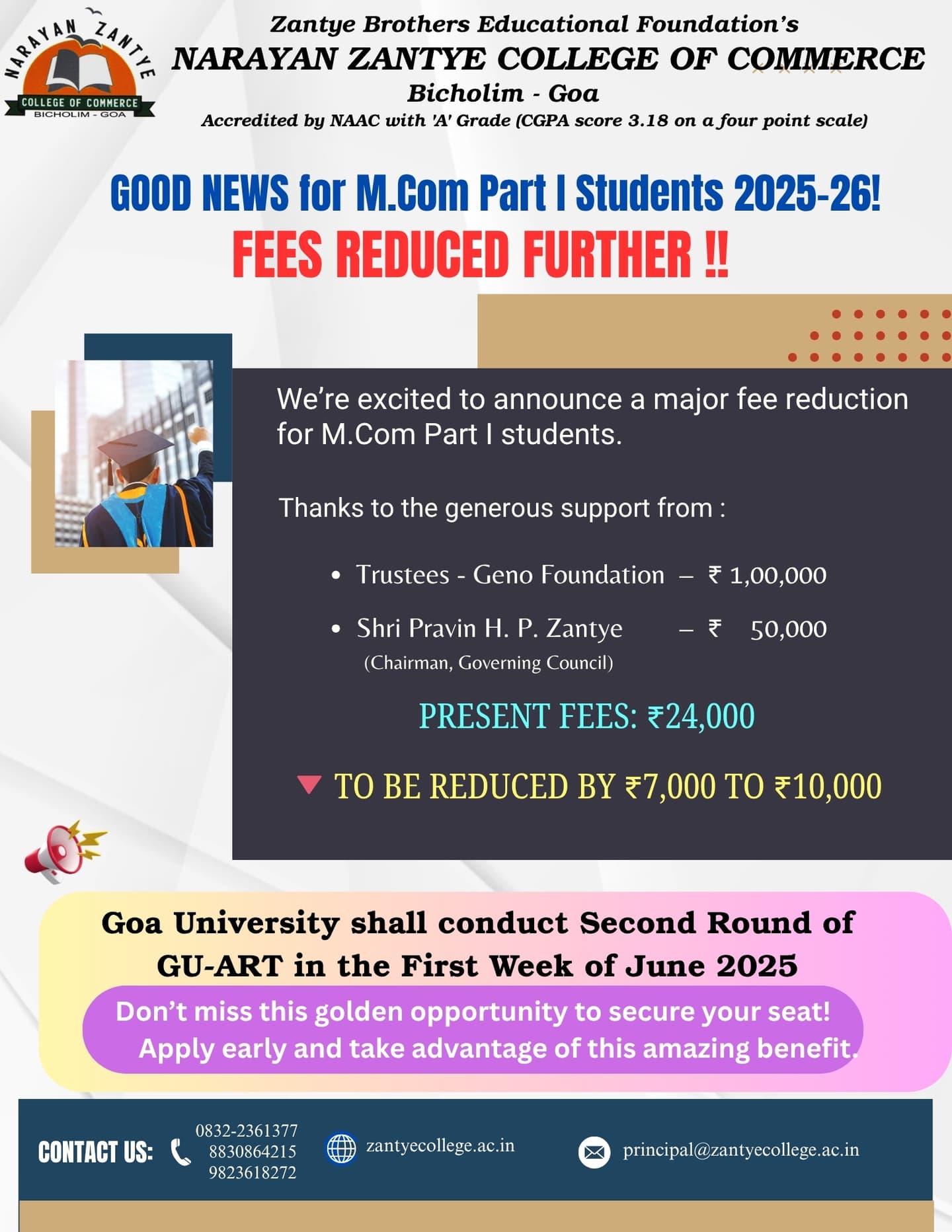 Narayan Zantye College of Commerce stands as a premier institution located in Bicholim, North Goa. Established in 1991 and affiliated with Goa University, it offers robust undergraduate and postgraduate programs in Commerce and Computer Applications, including B.Com, BCA, and M.Com. Known for its academic strength and co-educational environment, NZCC fosters holistic student development.